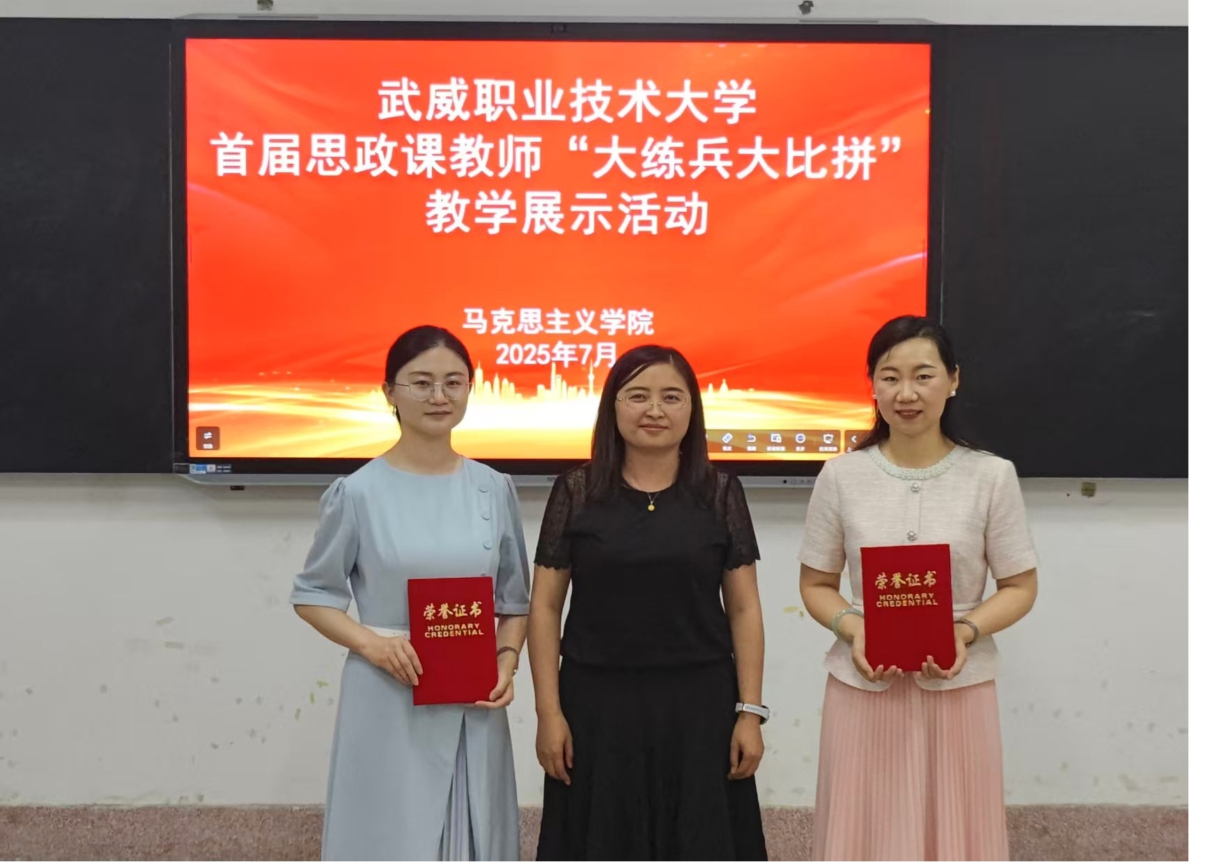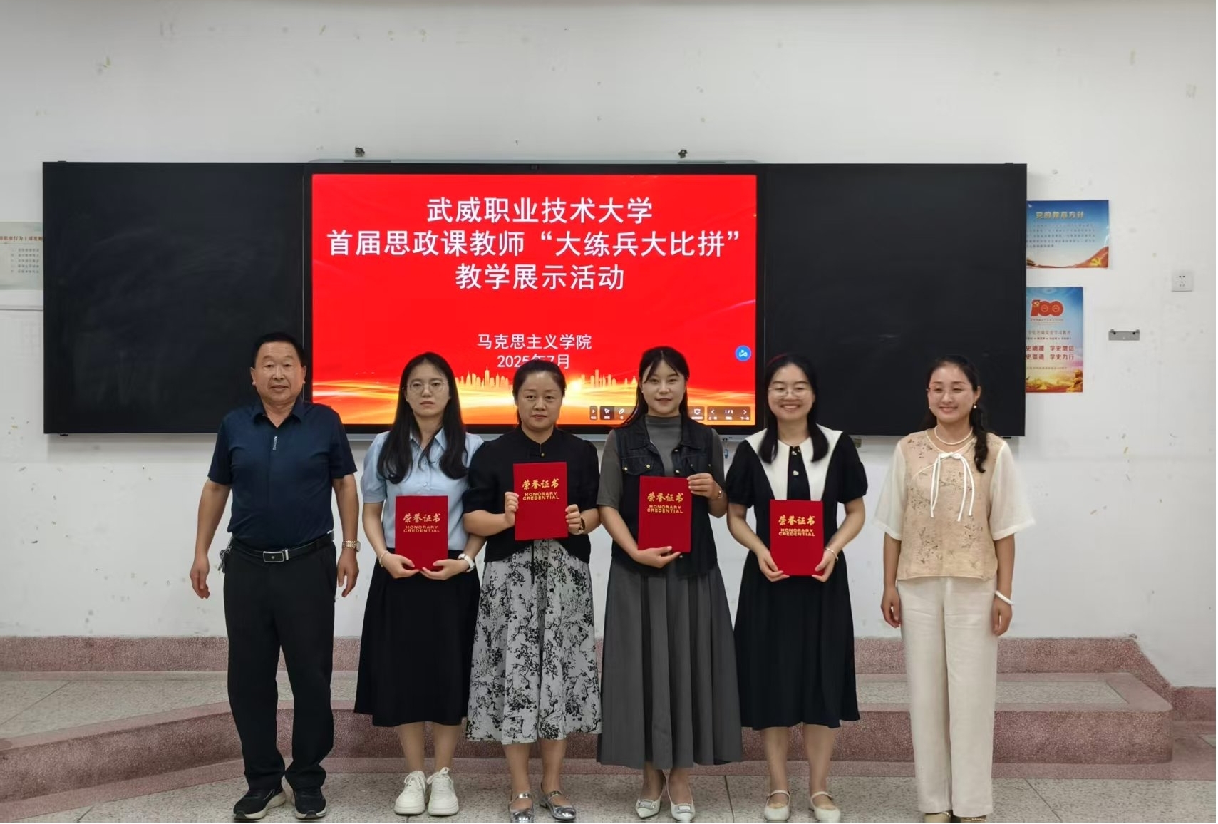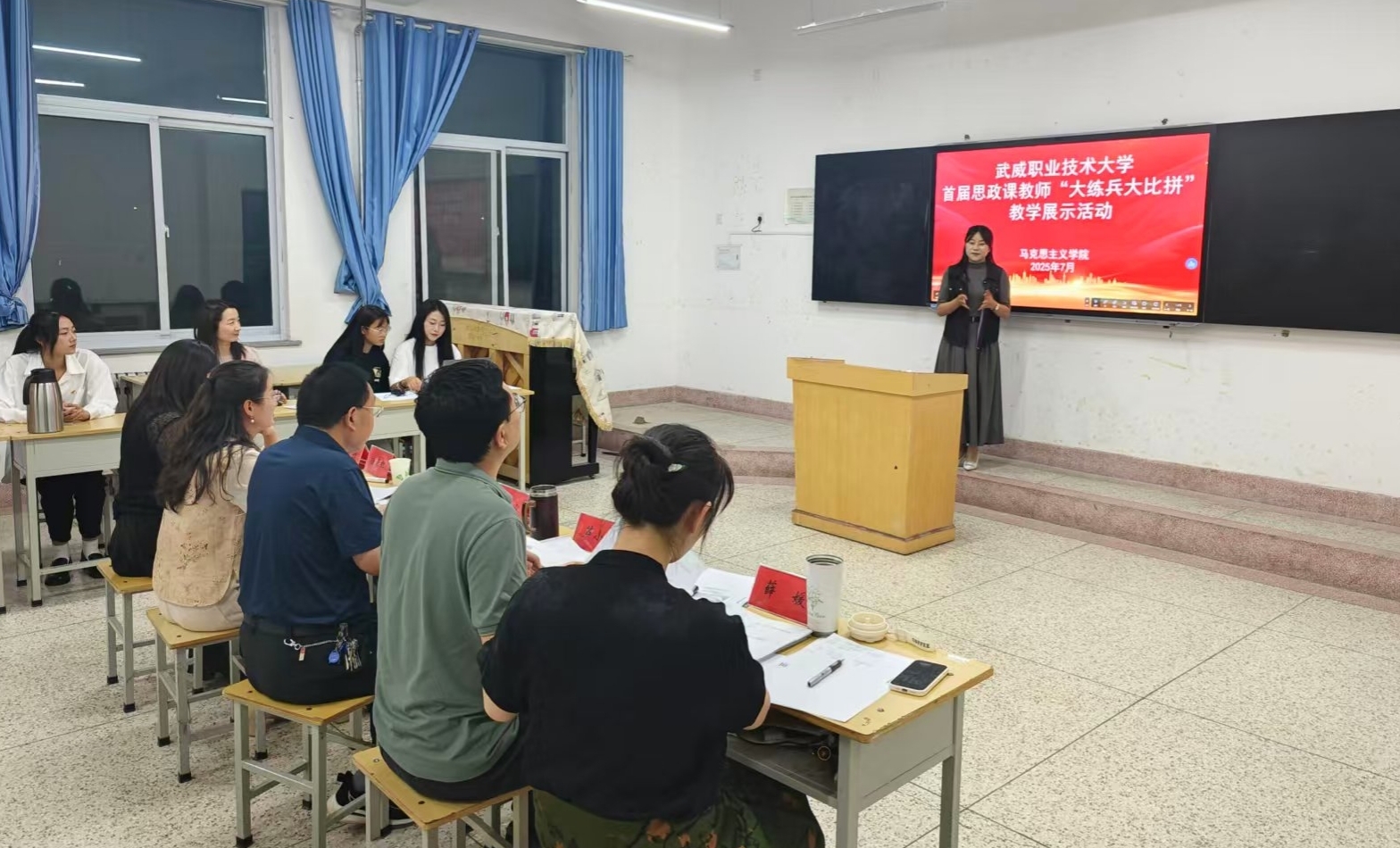 7月3日,武威職業(yè)技術(shù)大學(xué)首屆思政課教師“大練兵大比拼”教學(xué)展示活動(dòng)在勵(lì)勤樓206教室成功舉辦。活動(dòng)旨在推動(dòng)新時(shí)代思想政治理論課高質(zhì)量發(fā)展,提升思政課教師教學(xué)水平,打造高素質(zhì)思政課教師隊(duì)伍。