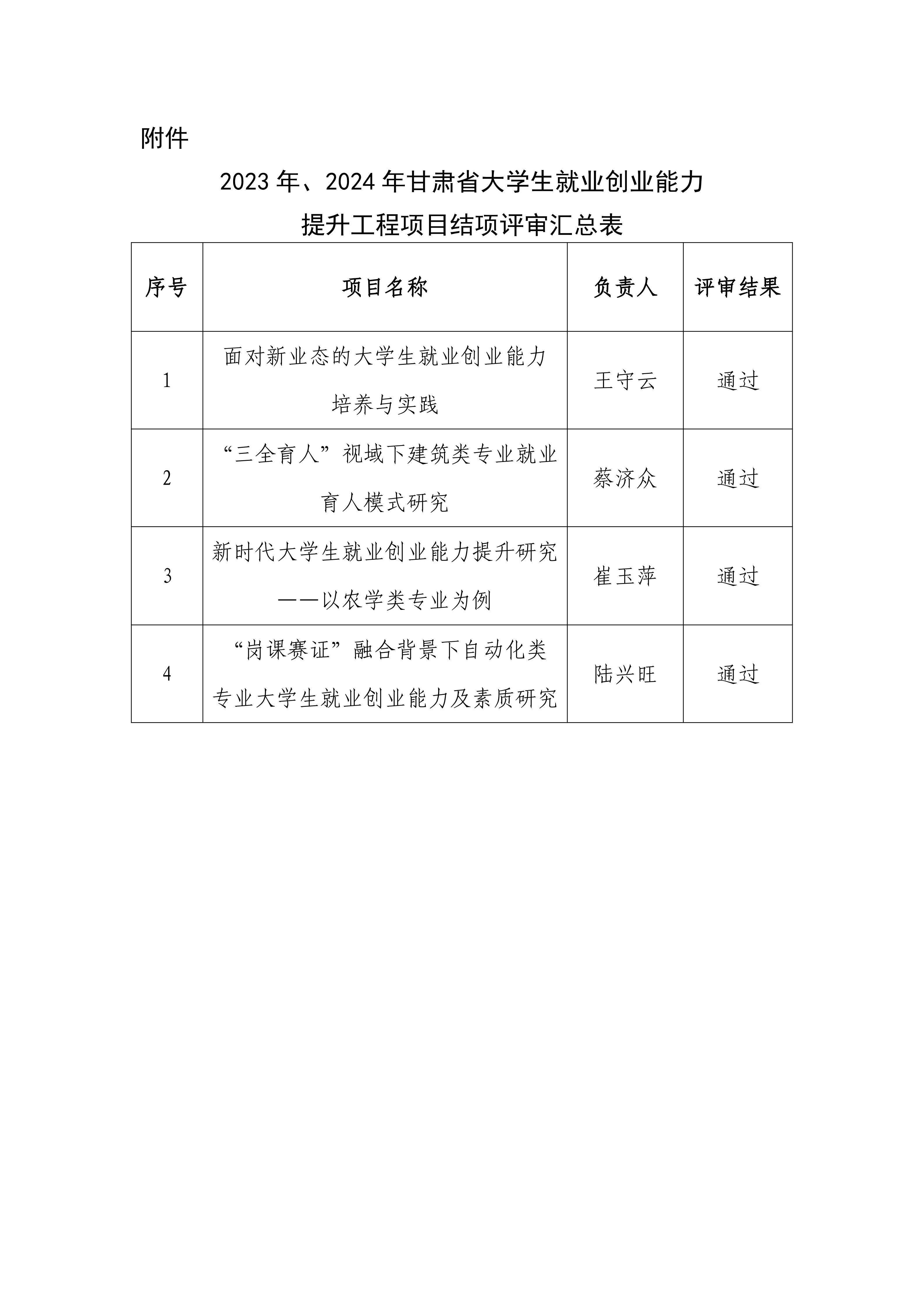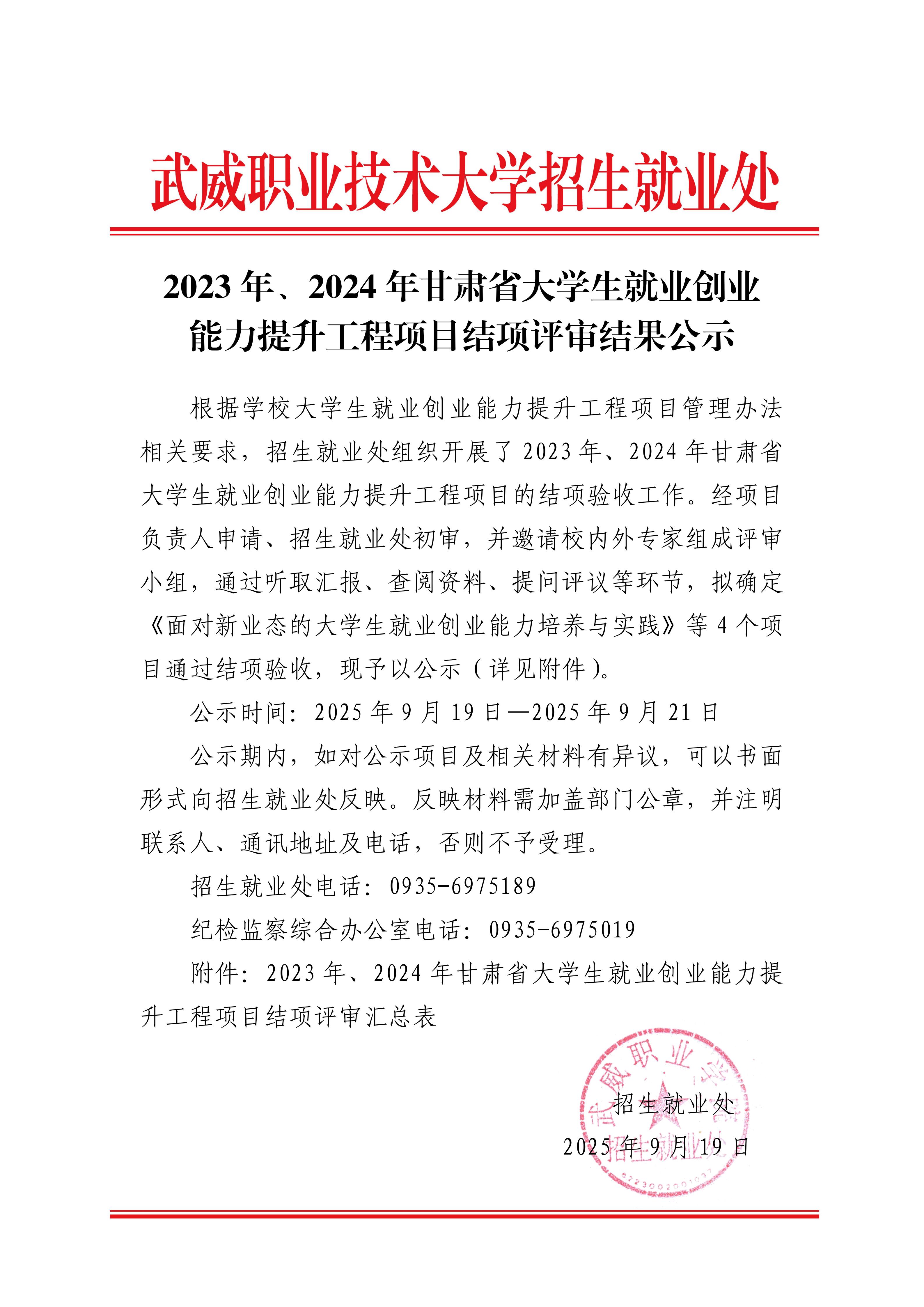 2023年、2024年甘肅省大學生就業(yè)創(chuàng)業(yè)能力提升工程項目結項評審結果公示