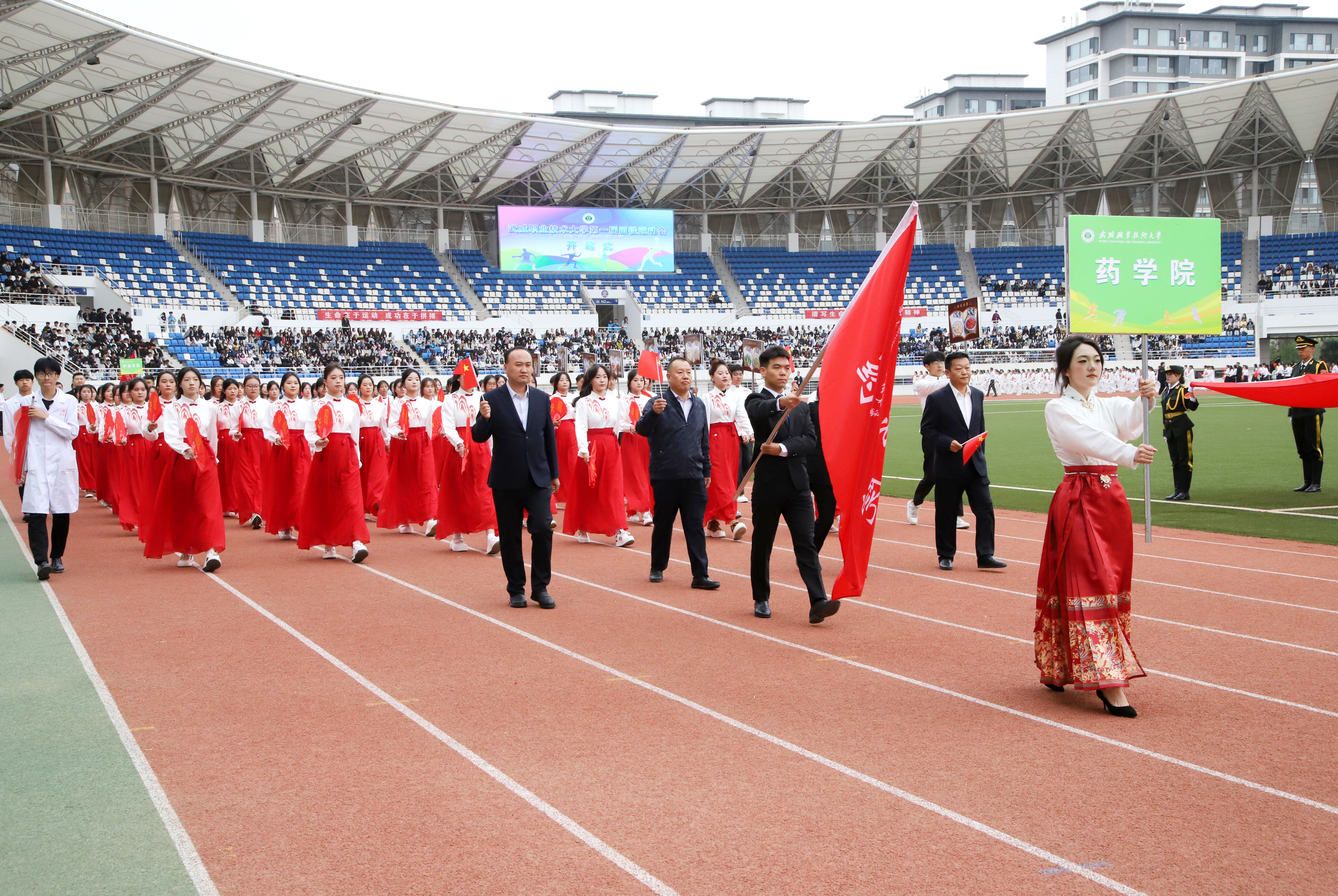 伴隨著激昂的《運動員進(jìn)行曲》,國旗護(hù)衛(wèi)隊、彩旗隊、裁判員隊伍、各學(xué)院方陣依次入場,隊列步伐整齊有力,口號堅定嘹亮,充分展示了師生良好的精神風(fēng)貌。