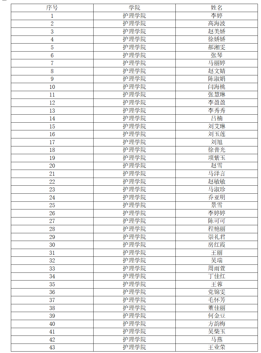 護理學院關于2025年學校助學金推薦人選的公示