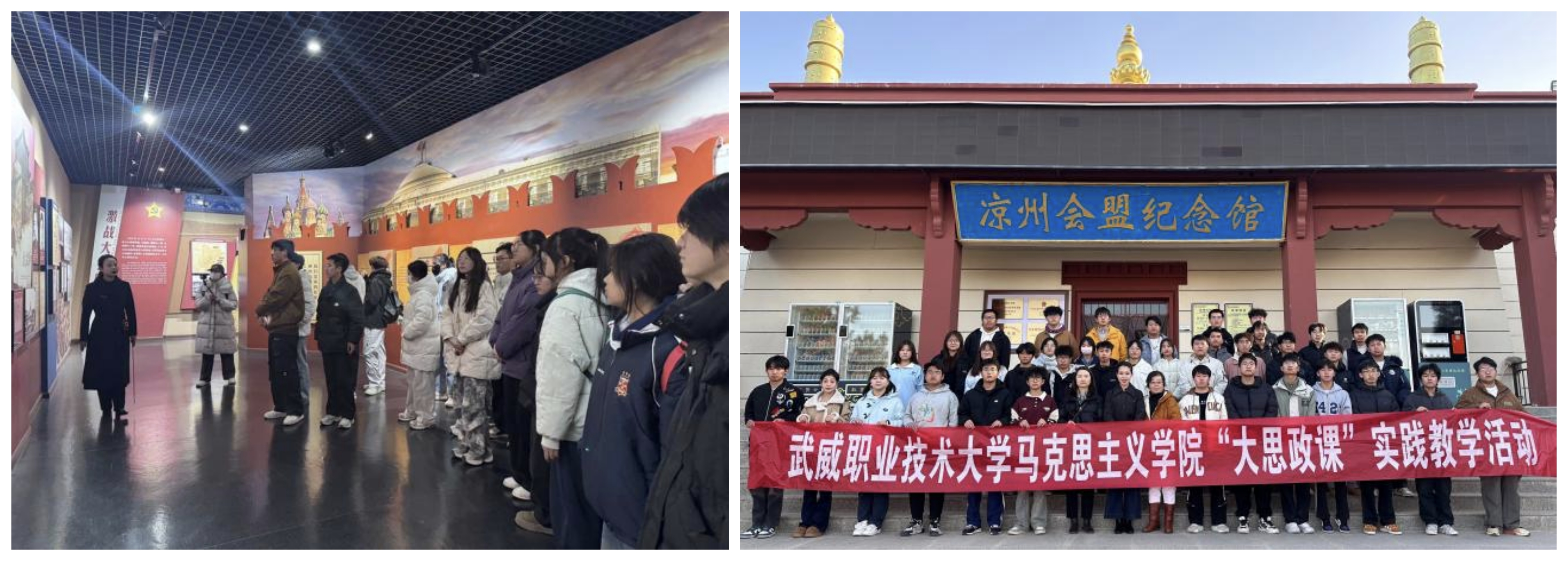 為深入推進(jìn)“大思政課”建設(shè),創(chuàng)新實(shí)踐育人模式,引導(dǎo)學(xué)生在實(shí)踐中感悟思想偉力、砥礪奮斗精神,11月21日—28日,馬克思主義學(xué)院分三個(gè)批次組織首批本科專業(yè)學(xué)生前往實(shí)踐教學(xué)基地古浪戰(zhàn)役紀(jì)念館和涼州會(huì)盟紀(jì)念館,開展了一場深刻而生動(dòng)的“行走的思政課”實(shí)踐教學(xué)活動(dòng)。