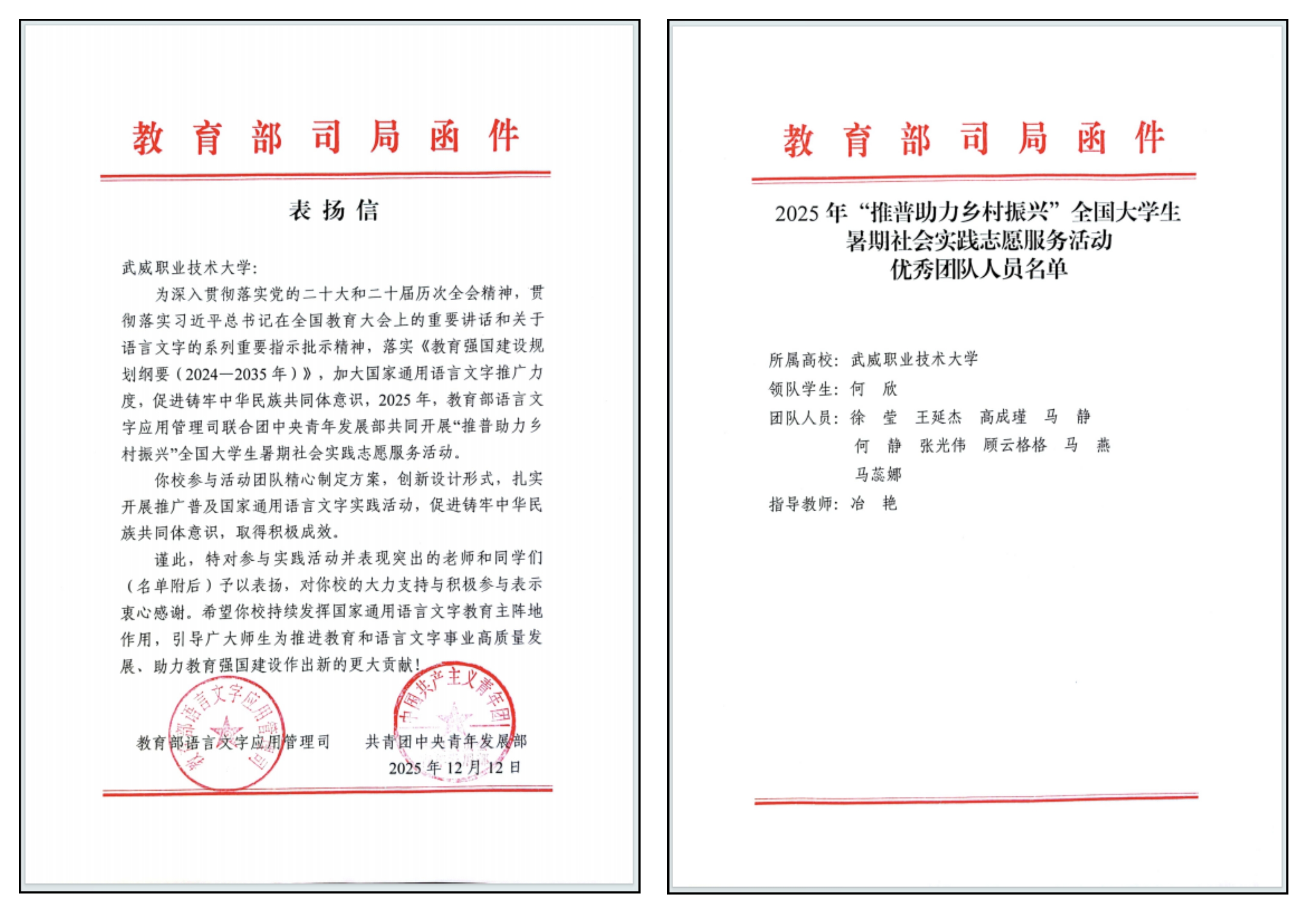 二、學(xué)校2025年“推普助力鄉(xiāng)村振興”全國大學(xué)生暑期社會實踐志愿服務(wù)活動首次獲國家級優(yōu)秀團(tuán)隊表彰