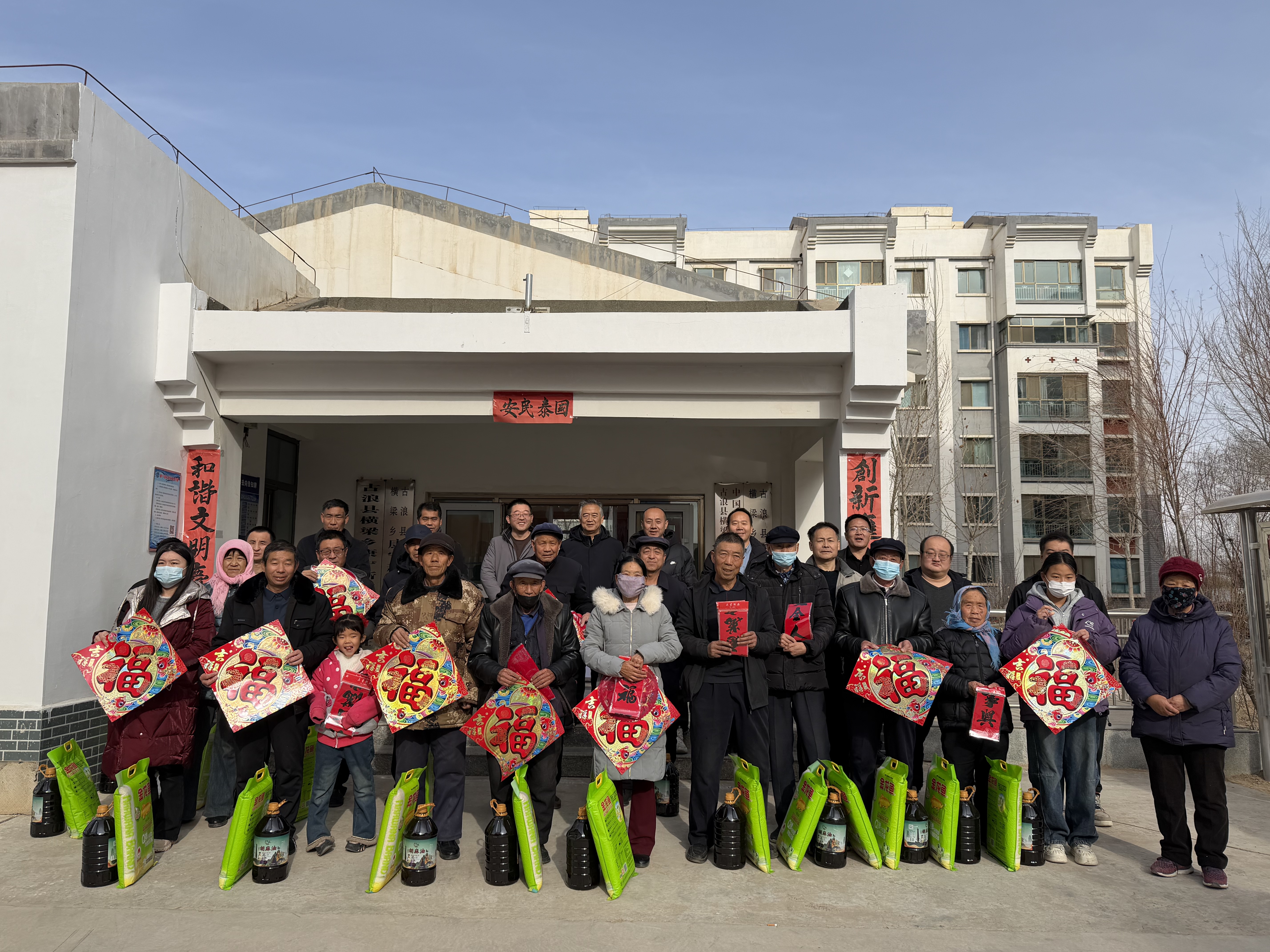 1月19日,學校在幫扶點古浪縣橫梁鄉(xiāng)康寧新村、幸福新村開展春節(jié)前走訪慰問和送溫暖、送春聯(lián)、送祝?;顒印槔щy群眾、結(jié)對幫扶戶、駐村工作隊送上春聯(lián)、福字、窗花、大米、胡麻油等慰問品,并聯(lián)合開展文化共建座談活動,將學校的關(guān)心關(guān)愛傳遞到了基層群眾心里,進一步豐富了群眾精神文化生活,營造了祥和、喜慶的節(jié)日氛圍。