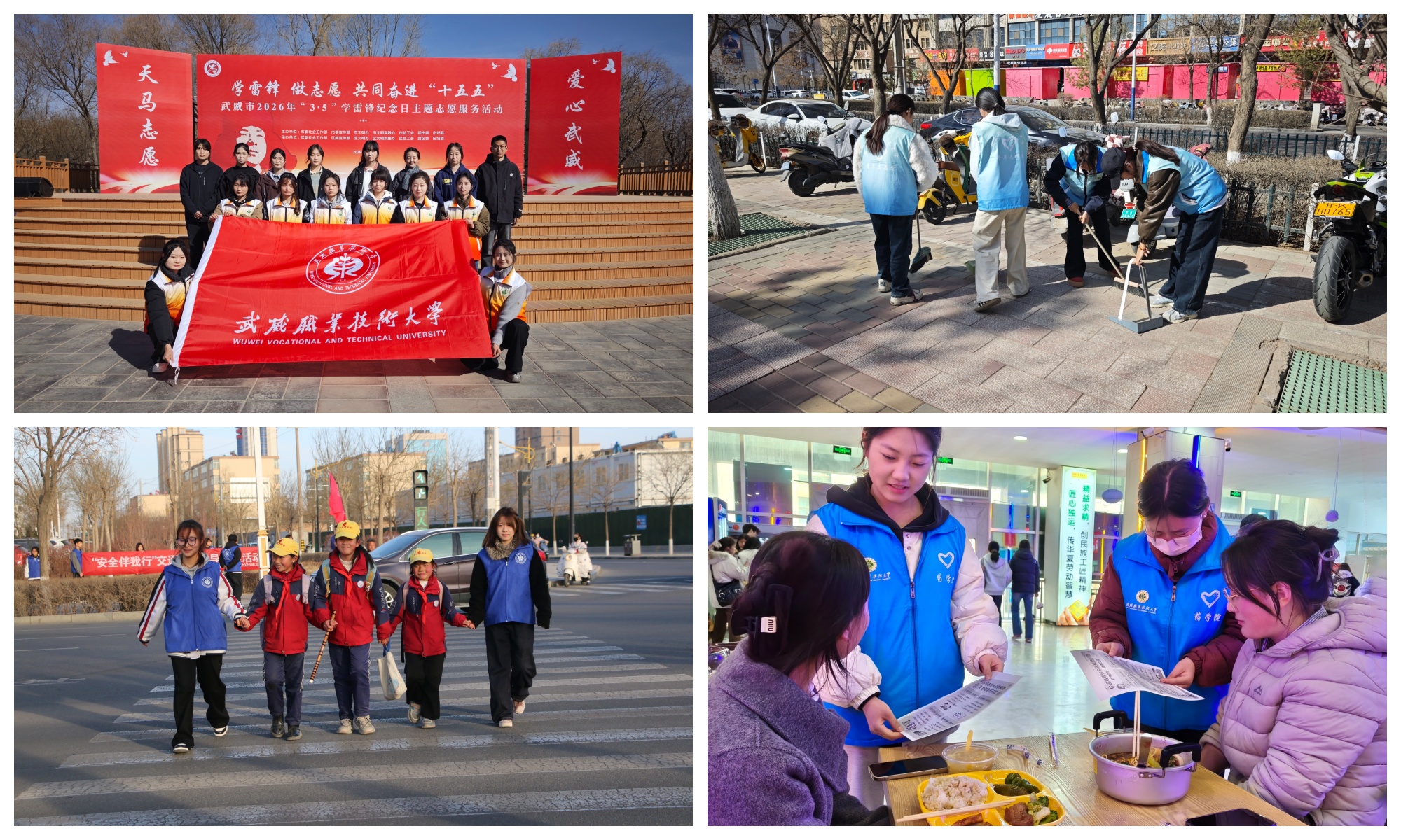 活動(dòng)當(dāng)天,志愿者們走出校園,在武威市3·5學(xué)雷鋒紀(jì)念日主題志愿服務(wù)活動(dòng)現(xiàn)場(chǎng)為群眾提供講解、引導(dǎo)等服務(wù)。在校園周邊街道,志愿者們對(duì)人行道、綠化帶進(jìn)行細(xì)致清理,以實(shí)際行動(dòng)維護(hù)環(huán)境整潔;同時(shí)通過開展垃圾分類宣傳、“無煙校園”倡導(dǎo)等活動(dòng),引導(dǎo)師生樹立環(huán)保理念,踐行綠色低碳生活方式。在各小學(xué)周邊路口、校門口等關(guān)鍵位置,志愿者們引導(dǎo)小朋友安全過馬路、有序離校,為小朋友們筑牢出行“安全防線”。在網(wǎng)絡(luò)安全宣傳點(diǎn),志愿者們通過案例分析、互動(dòng)問答等形式,普及防范網(wǎng)絡(luò)詐騙、保護(hù)個(gè)人信息等知識(shí),引導(dǎo)師生文明上網(wǎng)、安全用網(wǎng)。此外,還通過設(shè)立宣傳點(diǎn)、發(fā)放倡議書、開展健康知識(shí)普及等方式,向師生傳遞科學(xué)運(yùn)動(dòng)、合理膳食等健康理念,倡導(dǎo)養(yǎng)成文明健康的生活習(xí)慣,讓文明新風(fēng)吹遍校園每個(gè)角落。