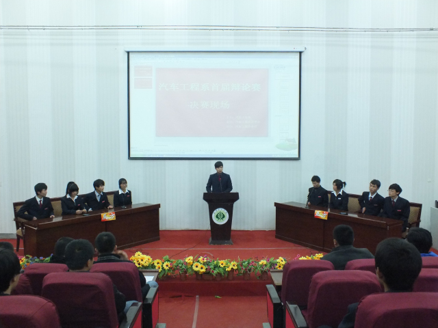 2012年11月19日晚七點(diǎn)半,汽車系團(tuán)總支、學(xué)生會舉辦的首屆辯論賽在東階梯教室圓滿落幕,本次比賽歷時十五天,經(jīng)過初賽、復(fù)賽的激烈競爭,最終兩支代表隊晉級決賽。我系學(xué)生工作負(fù)責(zé)人許成林老師、團(tuán)總支書記高鵬堂老師、政治輔導(dǎo)員劉吉仁老師及全體師生參加了本次活動。