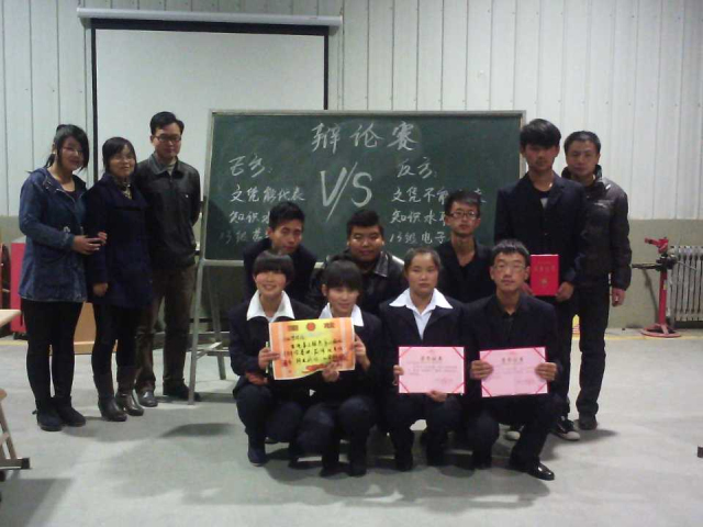 本次辯論賽分為初賽、復(fù)賽、半決賽和決賽四個(gè)環(huán)節(jié),參賽班級(jí)為汽車工程系的13級(jí)全體大專班。經(jīng)過激烈的唇槍舌戰(zhàn),最終,汽車電子班和汽車營(yíng)銷班憑借出色的反應(yīng)能力和嚴(yán)密的邏輯思維能力脫穎而出,進(jìn)入決賽;決賽中雙方辯手圍繞“文憑能否代表知識(shí)水平”展開了激烈的辯論,最終汽車營(yíng)銷班奪取了冠軍,李金潭等四名同學(xué)贏得了“最佳辯手”稱號(hào)。