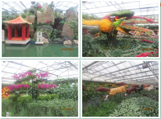 蔬菜園藝廳為優(yōu)秀蔬菜景觀的集中營,五顏六色的種子、蔬菜、花卉及其他普通材料,在園藝師的手中演繹成氣勢恢弘、雄偉壯觀、形神兼?zhèn)?、意趣天成的藝術(shù)精品。其中主景點(diǎn)美麗中國將大明湖牌坊、蓬萊閣、五岳獨(dú)尊、孔子雕像、象鼻山、黃果樹瀑布、云岡石窟、嘉峪關(guān)、長白山瀑 ……30余個(gè)國內(nèi)知名人文及自然景點(diǎn)穿插其中。整個(gè)景點(diǎn)從遠(yuǎn)處看去,把祖國的大好河山、現(xiàn)代科技和鮮活蔬菜有機(jī)融為一體,凸顯著綠色·科技·未來的主題。