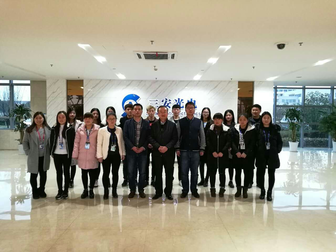為全面掌握學(xué)生頂崗實習(xí)情況,解決學(xué)生實習(xí)就業(yè)中存在的問題,進一步做好學(xué)生頂崗實習(xí)工作。214日至18日,黨總支書記黃文源帶隊前往福建泉州陽光中科能源股份有限公司和安徽蕪湖三安光電科技有限公司對我系2014級頂崗實習(xí)學(xué)生進行了回訪。