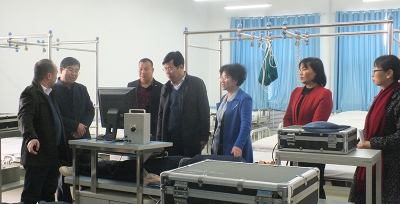 毛校長(zhǎng)一行參觀了護(hù)理系的生命科技館、機(jī)能實(shí)訓(xùn)室、基護(hù)實(shí)訓(xùn)室、內(nèi)外科實(shí)訓(xùn)室等醫(yī)學(xué)類(lèi)實(shí)訓(xùn)室,詳細(xì)了解了實(shí)驗(yàn)設(shè)備的運(yùn)行情況和實(shí)驗(yàn)實(shí)訓(xùn)課程的教學(xué)管理模式。潘玉華向來(lái)賓們介紹了學(xué)院申辦臨床醫(yī)學(xué)專(zhuān)業(yè)的進(jìn)展,以及我院實(shí)訓(xùn)課程建設(shè)和籌建實(shí)驗(yàn)實(shí)訓(xùn)室取得的成果。