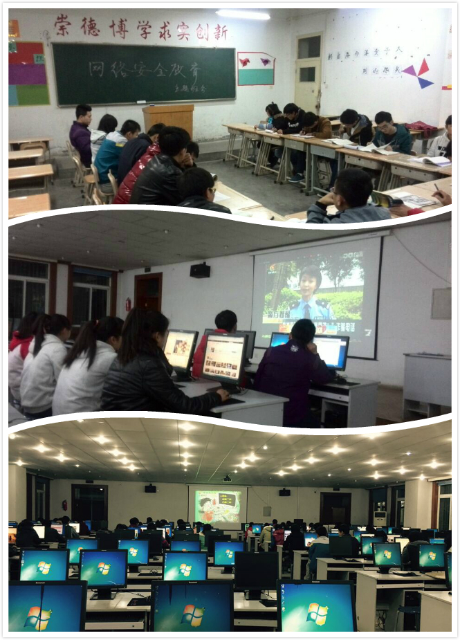 電信系團(tuán)總支組織各班團(tuán)支部于2014年11月24日至30日,深入開展了以“網(wǎng)絡(luò)安全宣傳教育”為主題的活動(dòng)。宣傳周期間,組織各班觀看了與網(wǎng)絡(luò)安全有關(guān)的紀(jì)錄片及電影,播放中央網(wǎng)信辦制作的“網(wǎng)絡(luò)安全在我身邊”公益短片等視頻資料;通過(guò)QQ、微博、微信等多種網(wǎng)絡(luò)傳播渠道,宣傳網(wǎng)絡(luò)安全知識(shí);召開“網(wǎng)絡(luò)安全教育”主題班會(huì),學(xué)生討論并舉例說(shuō)明大家在網(wǎng)絡(luò)中親身經(jīng)歷過(guò)的網(wǎng)絡(luò)危害,并分析其原因,使同學(xué)們了解更多的網(wǎng)絡(luò)詐騙形式。