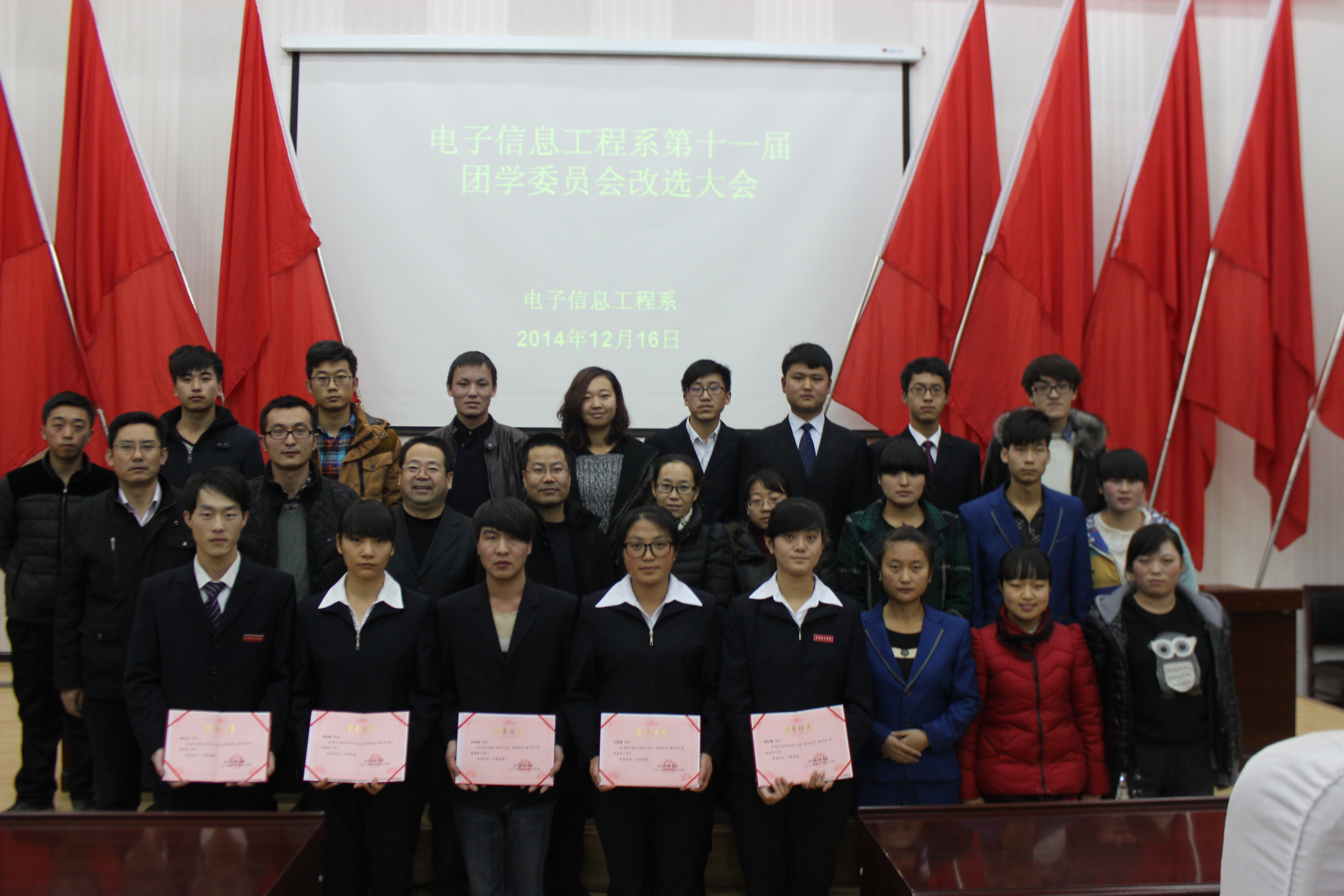 系主任白玉珍對我系團學(xué)工作給予了高度的評價,對上一屆團總支學(xué)生會優(yōu)秀學(xué)生干部進行了表彰并頒發(fā)了榮譽證書。最后系書記張伯成致閉幕詞,認為我系團學(xué)工作緊密圍繞學(xué)風(fēng)建設(shè)這一中心,著力推進對學(xué)生的各項服務(wù),開展了一系列富有特色的活動,取得了良好的成效。他還對我系的團學(xué)工作提出了新的要求,希望新一屆團學(xué)干部做到加強政治理論學(xué)習(xí),做好模范帶頭作用,克服困難,團結(jié)一致,服務(wù)好全系學(xué)生,為實現(xiàn)電子信息工程系學(xué)生工作新的跨越努力。