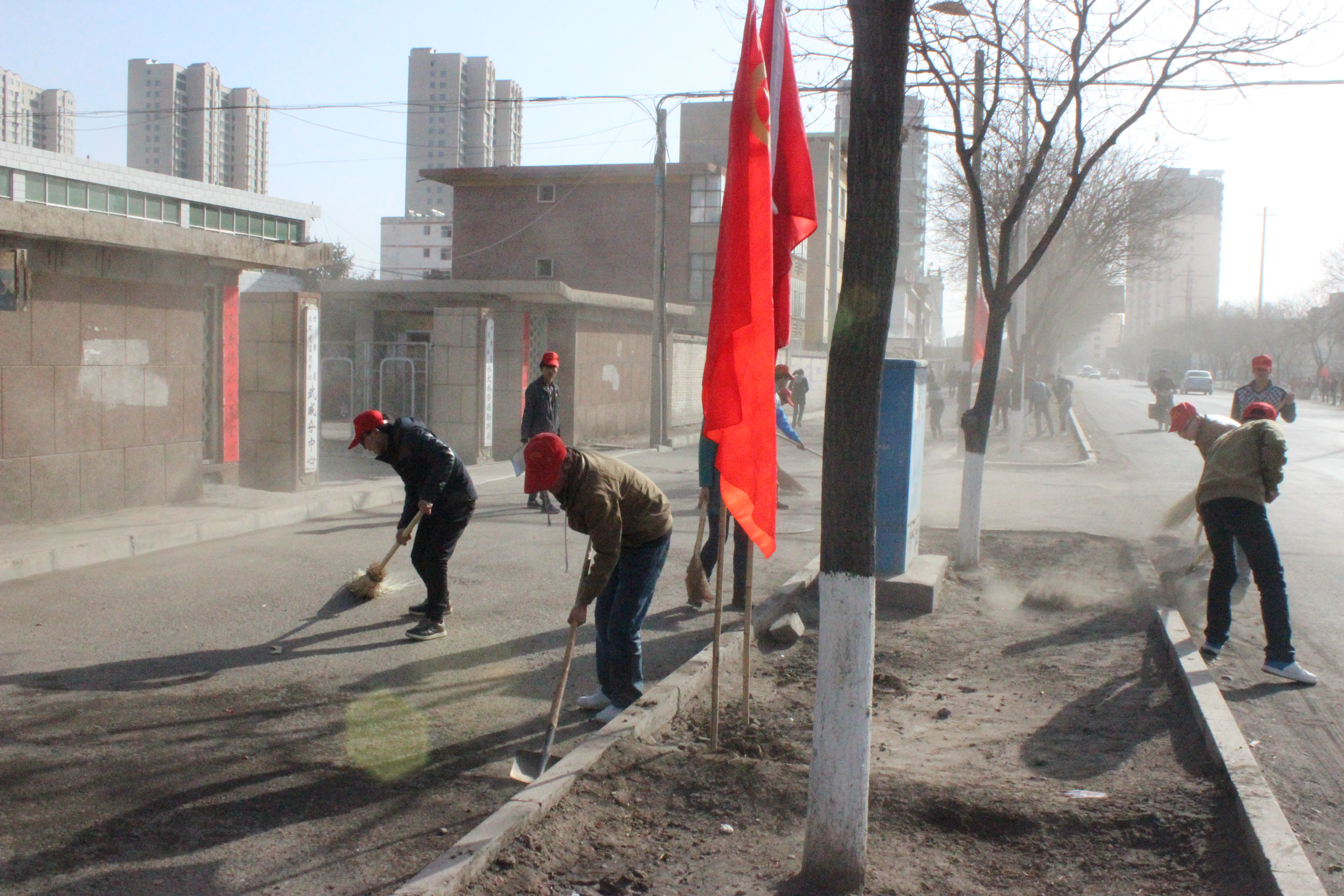 上午10點(diǎn),同學(xué)們?cè)谝惶?hào)教學(xué)樓前廣場(chǎng)集合,唐宗舜老師進(jìn)行了動(dòng)員安排。大家合理分工,積極配合,不怕臟不怕累,通過兩個(gè)小時(shí)的勞動(dòng)對(duì)校門口至水文勘測(cè)站路段北側(cè)的塵土和垃圾進(jìn)行了清理,同學(xué)們默默地奉獻(xiàn)自己的力量,也成了馬路上一道亮麗的風(fēng)景。