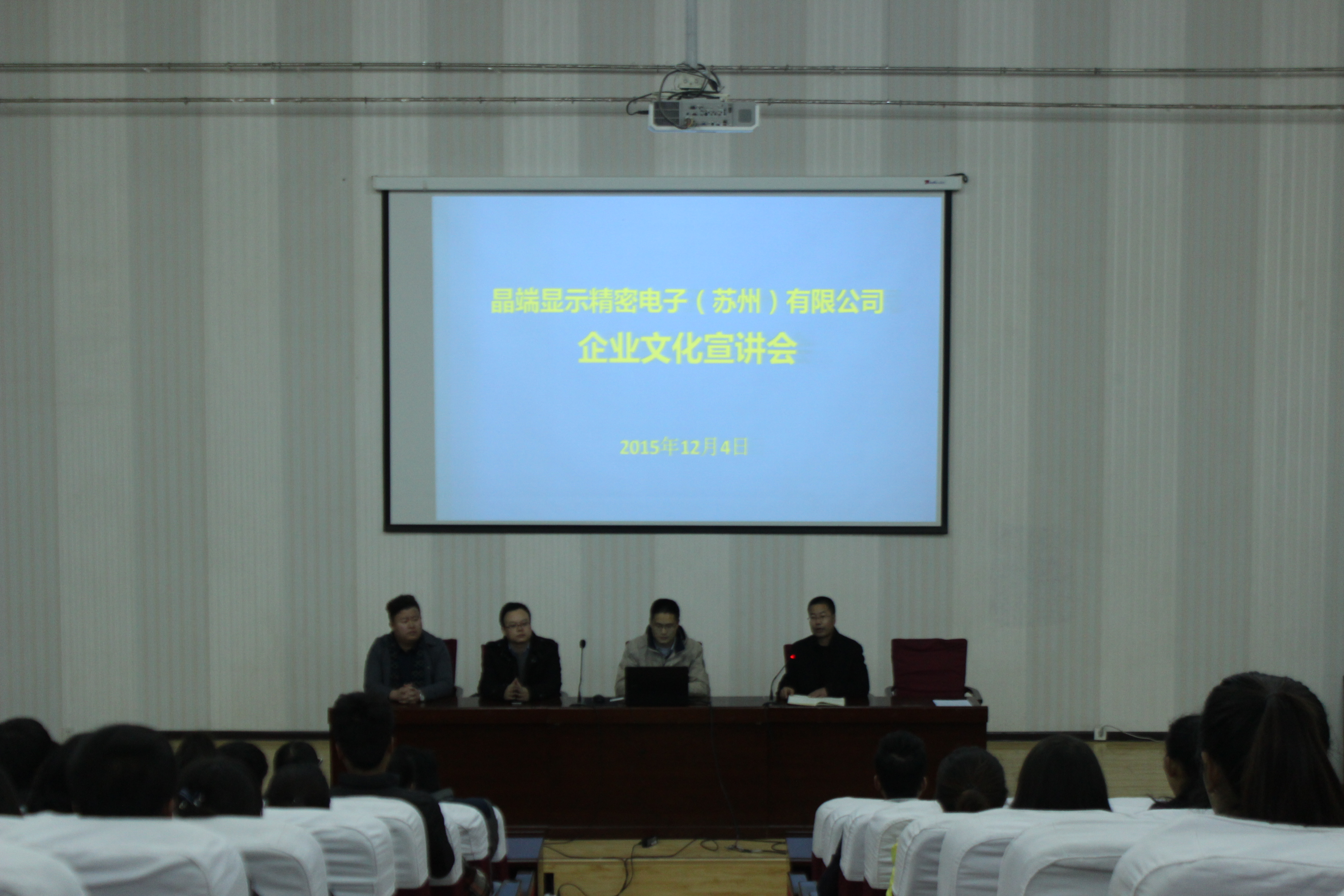 為切實(shí)做好2016屆畢業(yè)生就業(yè)工作,加強(qiáng)學(xué)院同用人單位的廣泛交流與合作,拓展就業(yè)渠道,培育就業(yè)市場(chǎng),促使畢業(yè)班同學(xué)順利實(shí)習(xí)、就業(yè),12月4日下午4時(shí),電子信息工程系在學(xué)院正德廳舉辦了用人單位宣講招聘會(huì)。本次活動(dòng)邀請(qǐng)了學(xué)院校企合作理事單位晶端顯示精密電子(蘇州)有限公司參加,電子類專業(yè)學(xué)生180多人參加了本次宣講招聘會(huì)。