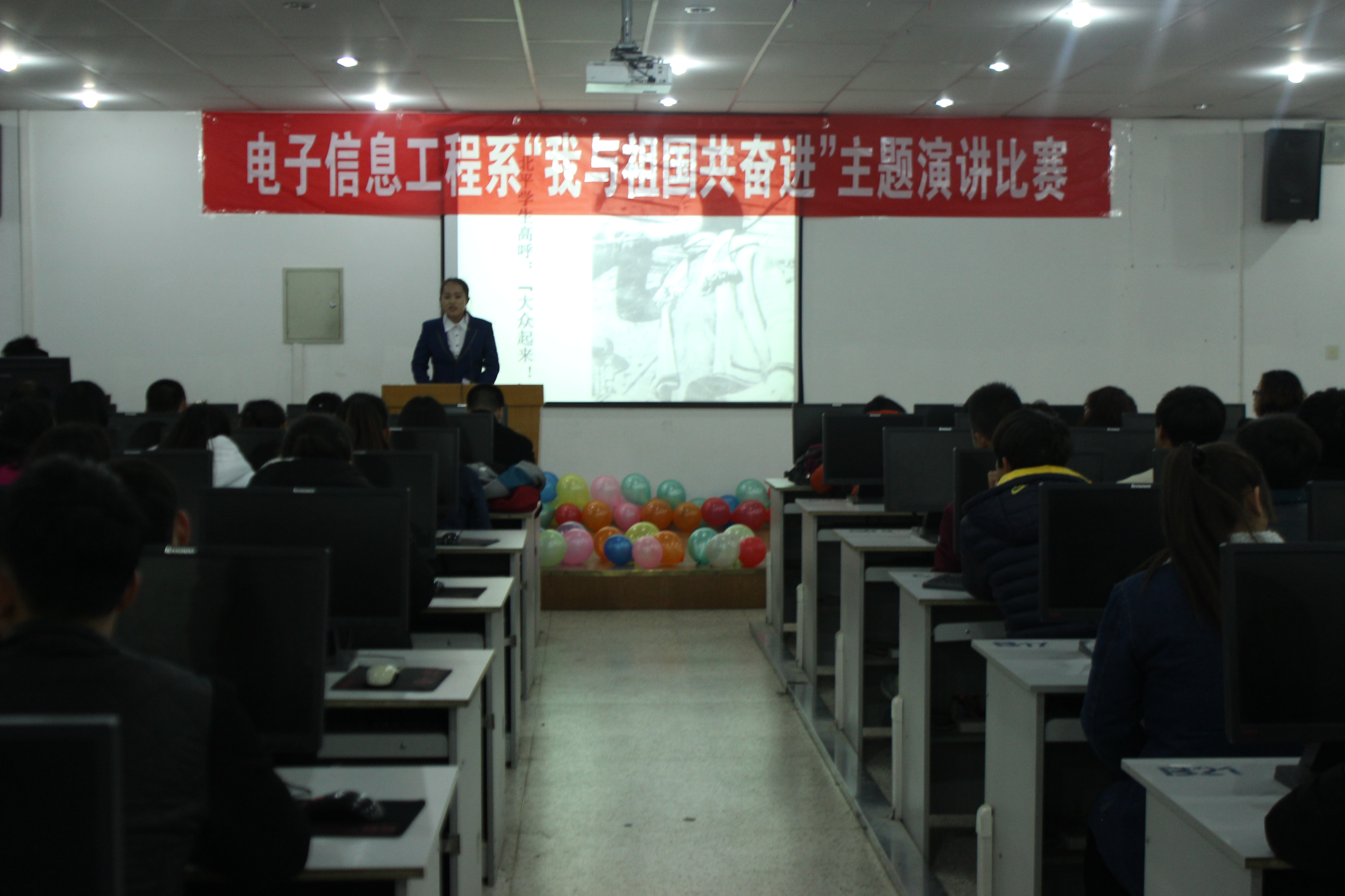 為紀(jì)念“12·9”學(xué)生愛國(guó)運(yùn)動(dòng)80周年,激發(fā)我系青年學(xué)生的愛國(guó)熱情和報(bào)國(guó)之志,進(jìn)一步培育和踐行社會(huì)主義核心價(jià)值觀,提高學(xué)生思想政治素質(zhì),12月6日晚,電子信息工程系在尚德樓11號(hào)機(jī)房舉辦了“我與祖國(guó)共奮進(jìn)”主題演講比賽。電子信息工程系黨總支書記張伯成、輔導(dǎo)員鄧偉華、團(tuán)總支書記唐宗舜、全體班主任及系團(tuán)總支180多名團(tuán)員青年觀看了比賽。