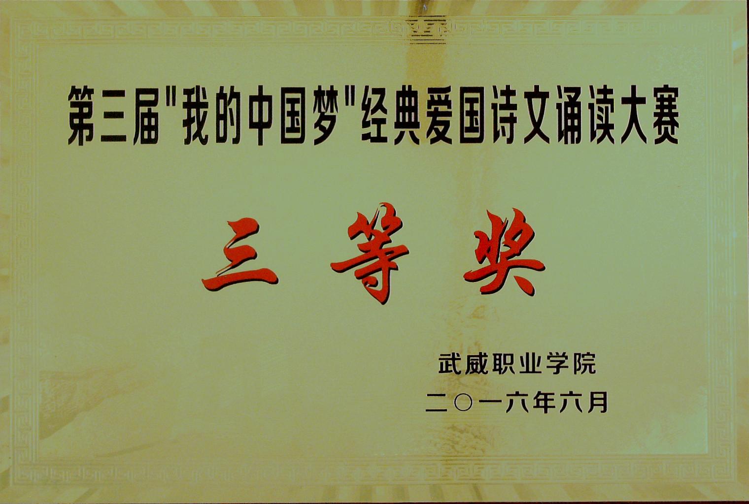 ”我的中國“夢經(jīng)典愛國詩文誦讀大賽二等獎