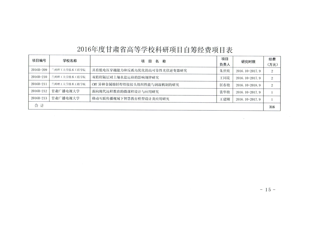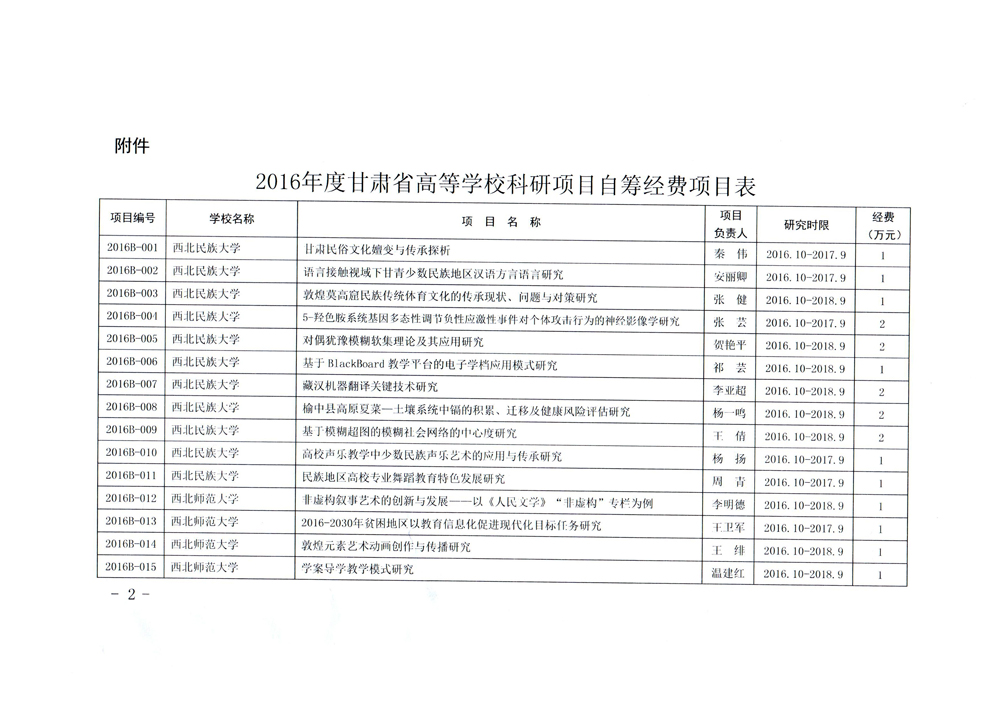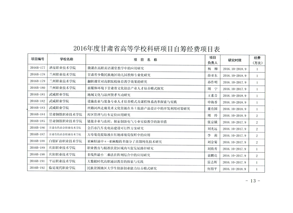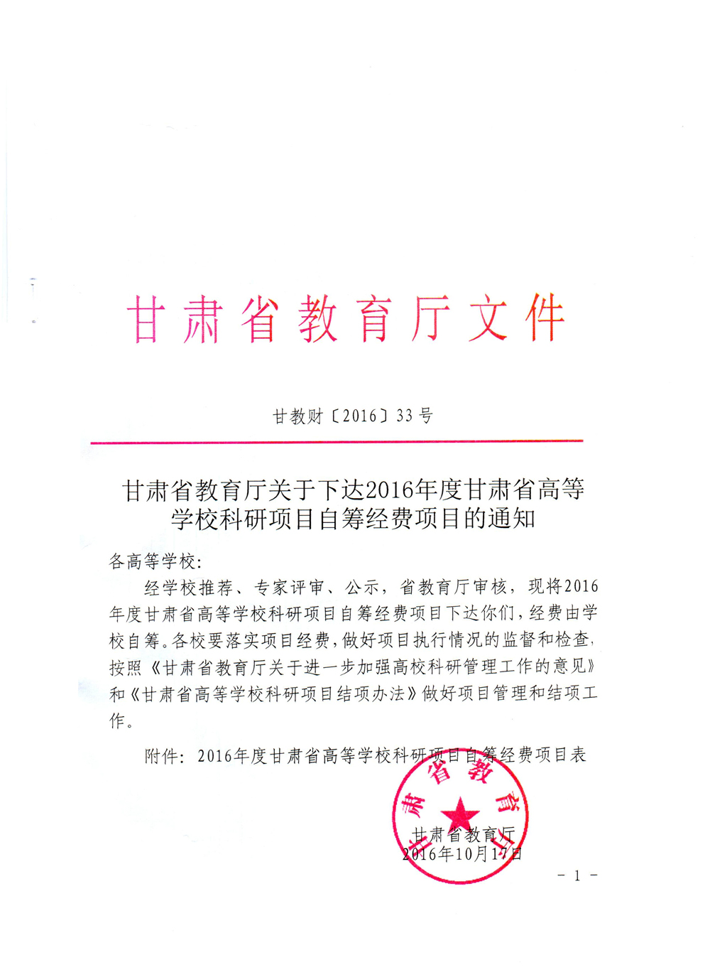 甘肅省教育廳關于下達2016年度甘肅省高等學校科研項目自籌經(jīng)費項目的通知