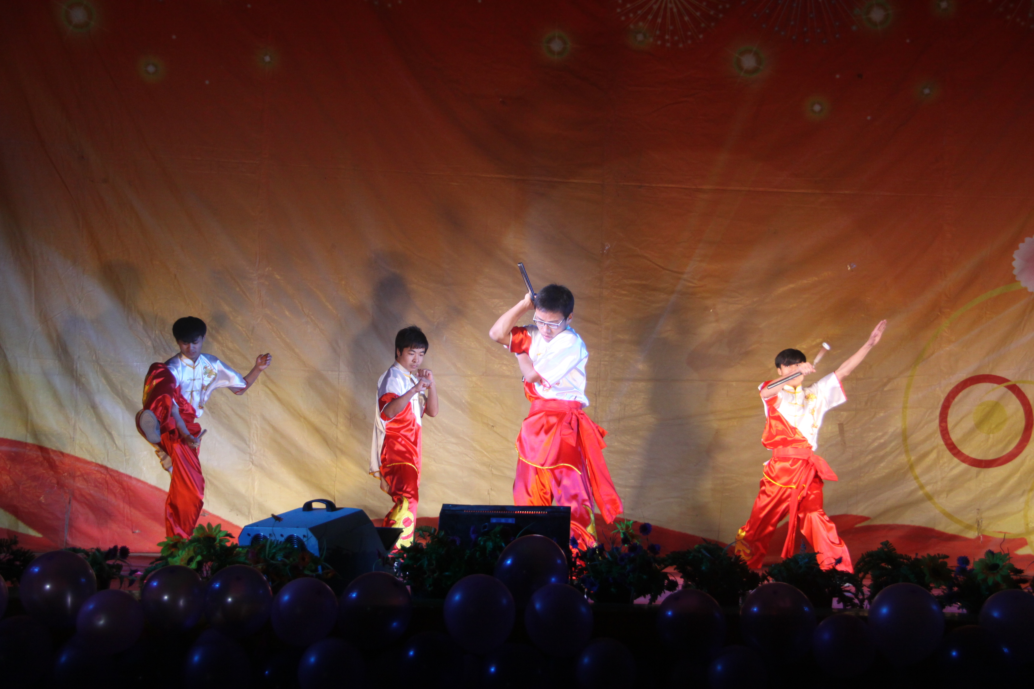 晚上的開幕式文藝演出有近1200名師生觀看,現(xiàn)場氣氛熱烈。各社團表演了精彩紛呈的文藝節(jié)目,有舞蹈《歡樂的跳吧》、《有沒有》、《Boy and girl》等,歌伴舞《青花瓷》、《瑪利亞》,獨唱《紅日》,樂隊表演《約定的地方》,曲藝類節(jié)目《魔術(shù)表演》、相聲《說地名》、小品《大話西游》和武術(shù)表演、詩歌朗誦等。整個演出洋溢著青春的風采,讓現(xiàn)場的每一位同學(xué)感受到了社團文化的無窮魅力。
