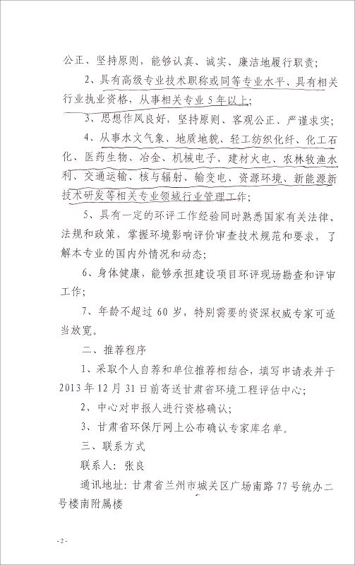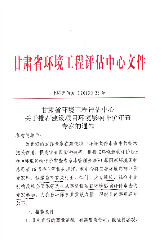 附件:甘肅省環(huán)境工程評估中心關于推薦建設項目環(huán)境影響評價審查專家的通知