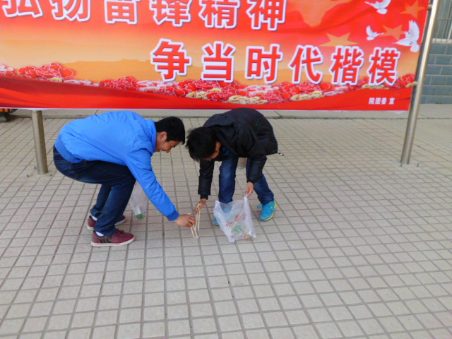 今年3月5日是毛澤東同志題詞“向雷鋒同志學(xué)習(xí)”50周年紀(jì)念日,也是第14個(gè)“中國(guó)青年志愿者服務(wù)日”。3月5日上午10時(shí),我系青年志愿者在院團(tuán)委的號(hào)召組織下,在學(xué)院中心廣場(chǎng)、1號(hào)教學(xué)樓、2號(hào)教學(xué)樓及南操場(chǎng)周?chē)归_(kāi)了義務(wù)勞動(dòng)。將馬路、花園、教學(xué)樓及操場(chǎng)周?chē)澜堑募埿?、果皮等垃圾進(jìn)行了徹底清理。我系青年志愿者發(fā)揮了不怕臟、不怕苦的精神。