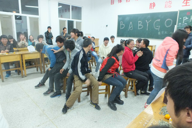 聯(lián)誼晚會以各個班級編排的集體節(jié)目為主體,這些精心編排的節(jié)目贏得了觀眾們的陣陣掌聲。中間穿插的“你畫我踩”、“搶凳子”和“我愛記歌詞”等趣味互動游戲?qū)⑷珗鲇^眾的積極性充分地調(diào)動了起來。晚會高潮迭起,同學(xué)們在笑聲中度過了一個愉快的晚上。