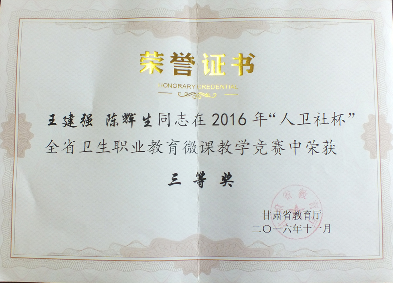 我院教師在2016年“人衛(wèi)社杯”全省衛(wèi)生職業(yè)教育微課教學競賽中獲獎