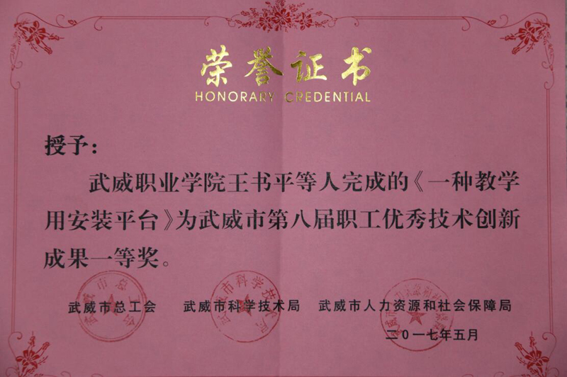 為貫徹落實(shí)武威市委、市政府關(guān)于《武威市十萬(wàn)職工職業(yè)技能素質(zhì)提升活動(dòng)工作方案(2016-2020年)》(武政辦發(fā)〔201672號(hào))文件精神,推動(dòng)我市“雙創(chuàng)”工作的深入開展,激發(fā)我市廣大企事業(yè)職工提升技能和開拓創(chuàng)新的熱情。近日,由市總工會(huì)、市人社局、市科技局等單位聯(lián)合舉辦了“武威市第八屆職工技術(shù)創(chuàng)新成果評(píng)選活動(dòng)”。本屆職工技術(shù)創(chuàng)新成果評(píng)選共征集創(chuàng)新成果87項(xiàng),其中:學(xué)院推薦了十項(xiàng)研究課題、專利技術(shù)項(xiàng)目,王書平團(tuán)隊(duì)《一種教學(xué)用安裝平臺(tái)》項(xiàng)目成果榮獲一等獎(jiǎng),申賓德團(tuán)隊(duì)《簡(jiǎn)易焊工考試用帶坡口鋼板火焰切割下料機(jī)的研究與應(yīng)用》,王勝團(tuán)隊(duì)《“胰美舒”治療2型糖尿病周圍神經(jīng)病變(氣陰兩虛兼瘀證)的臨床觀察》項(xiàng)目成果榮獲三等獎(jiǎng)。