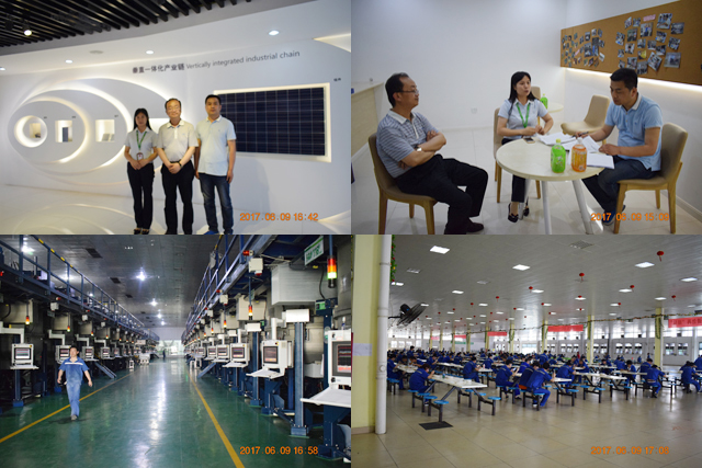 晶科能源控股有限公司是全球為數(shù)不多的擁有垂直一體化產(chǎn)業(yè)鏈的光伏制造企業(yè),業(yè)務(wù)涵蓋了優(yōu)質(zhì)的硅錠、硅片、電池片生產(chǎn)、高效單多晶光伏組件制造以及光伏電站建設(shè)等領(lǐng)域,是目前全球光伏組件生產(chǎn)的龍頭企業(yè),2016年中國500強企業(yè)。公司負責人帶領(lǐng)考察人員參觀了公司現(xiàn)代化的生產(chǎn)車間、晶科商學院、員工宿舍和食堂,介紹了公司的發(fā)展情況和用人需求。在考察過程中,考察人員就公司給學生提供的工作崗位、待遇、住宿、安全管理等情況與企業(yè)負責人進行了深入交流。