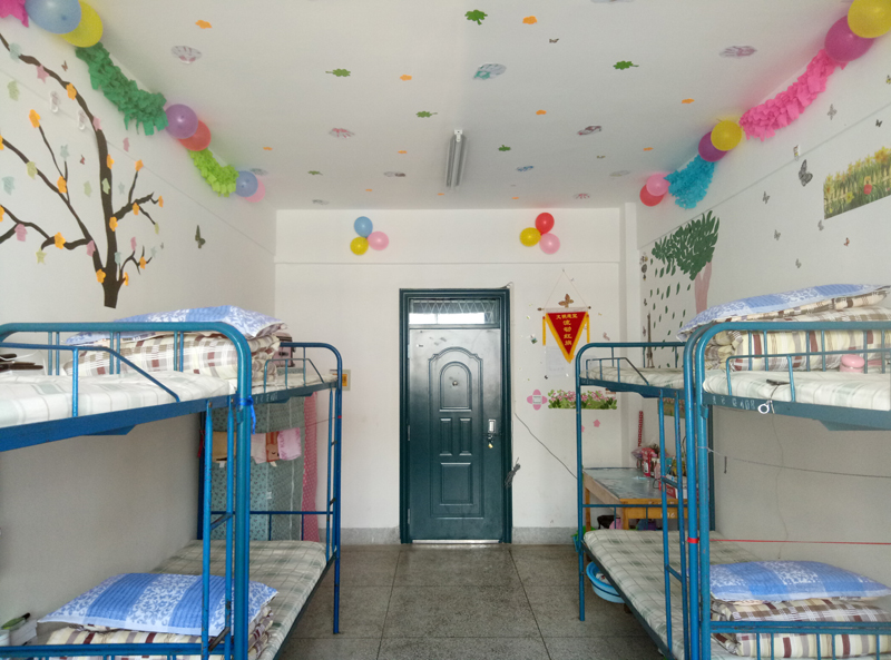 各宿舍衛(wèi)生狀況普遍較好,基本做到了勤開(kāi)窗,勤掃除,被褥疊放整齊,地面、桌面干凈整潔,用電合理、安全。同學(xué)們大膽創(chuàng)新利用剪紙、剪花、圖貼等手工作品將宿舍裝扮得優(yōu)雅而漂亮。也有同學(xué)用書法、繪畫作品裝扮宿舍,為宿舍增添了藝術(shù)的氣息。