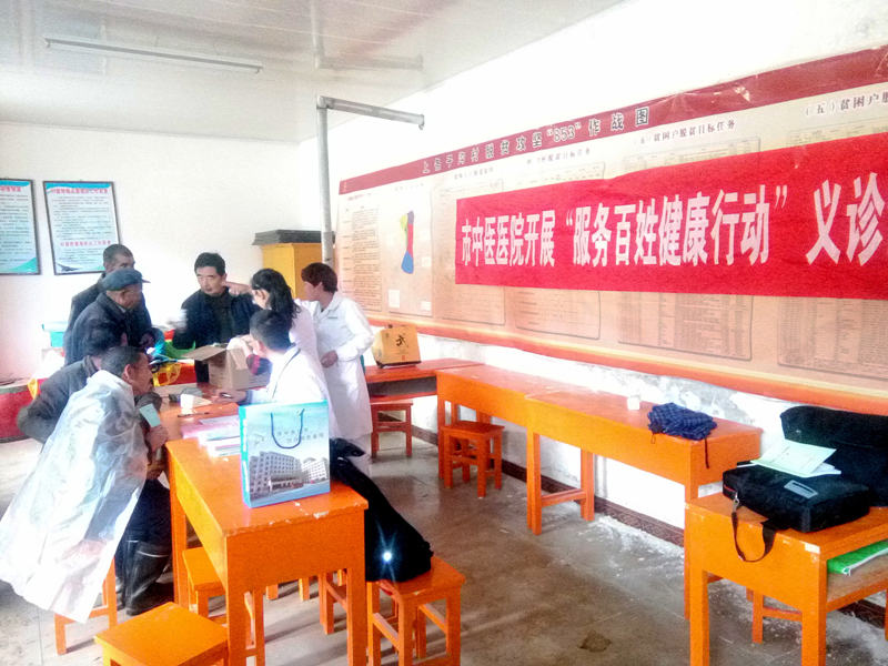 走訪(fǎng)調(diào)研活動(dòng)結(jié)束后,醫(yī)務(wù)人員在村會(huì)議室開(kāi)展送醫(yī)送藥義診活動(dòng)。村民們踴躍前來(lái)診病,都說(shuō)城里的大夫好,不但免費(fèi)為我們開(kāi)方,而且還免費(fèi)送藥。