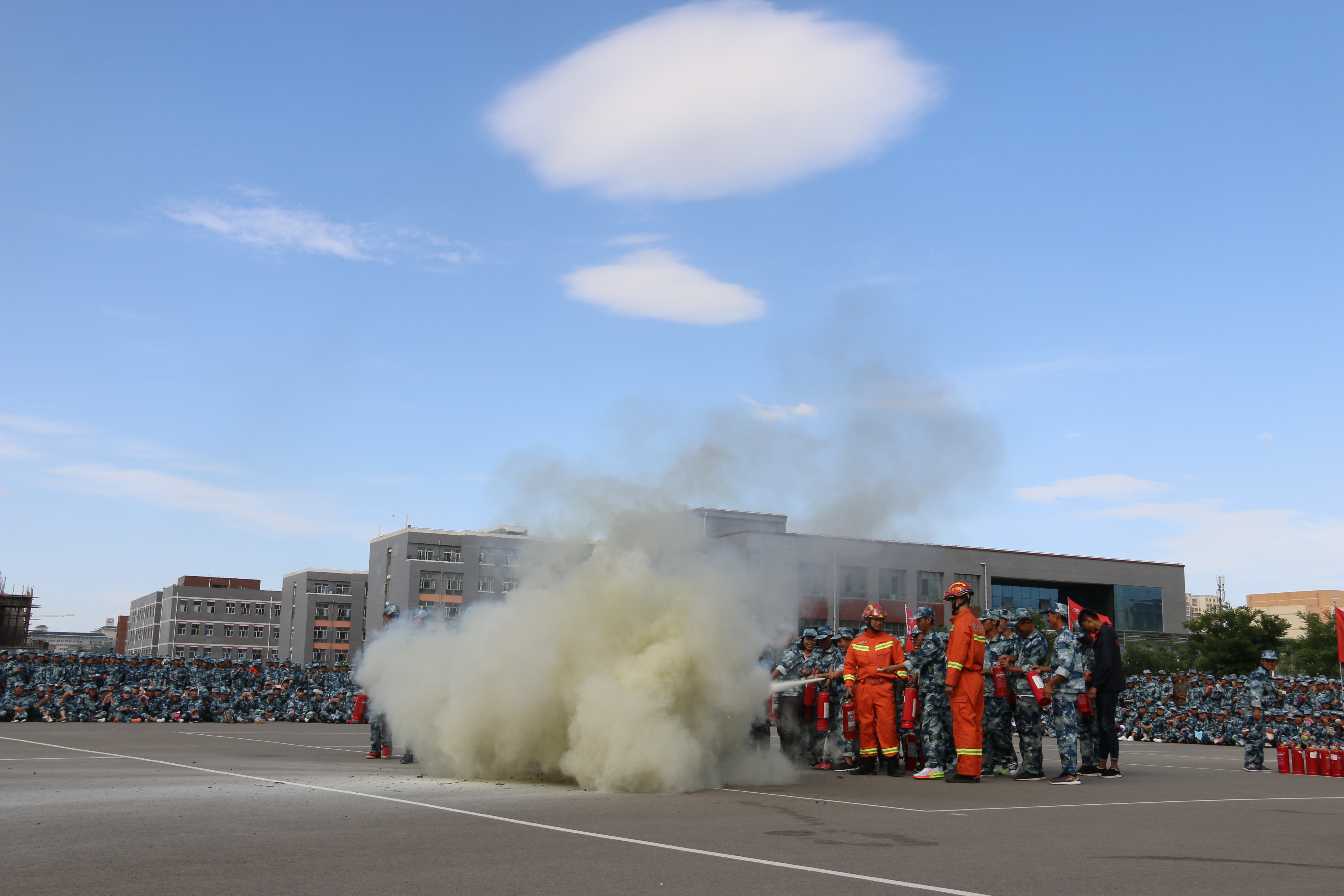隨后,所有參演學生整隊到操場參加了滅火演練。在消防官兵的講解和和示范下,同學們體驗了處置著火液化氣瓶、干粉滅火器滅火,通過模型煙室等操作?! ?/p>