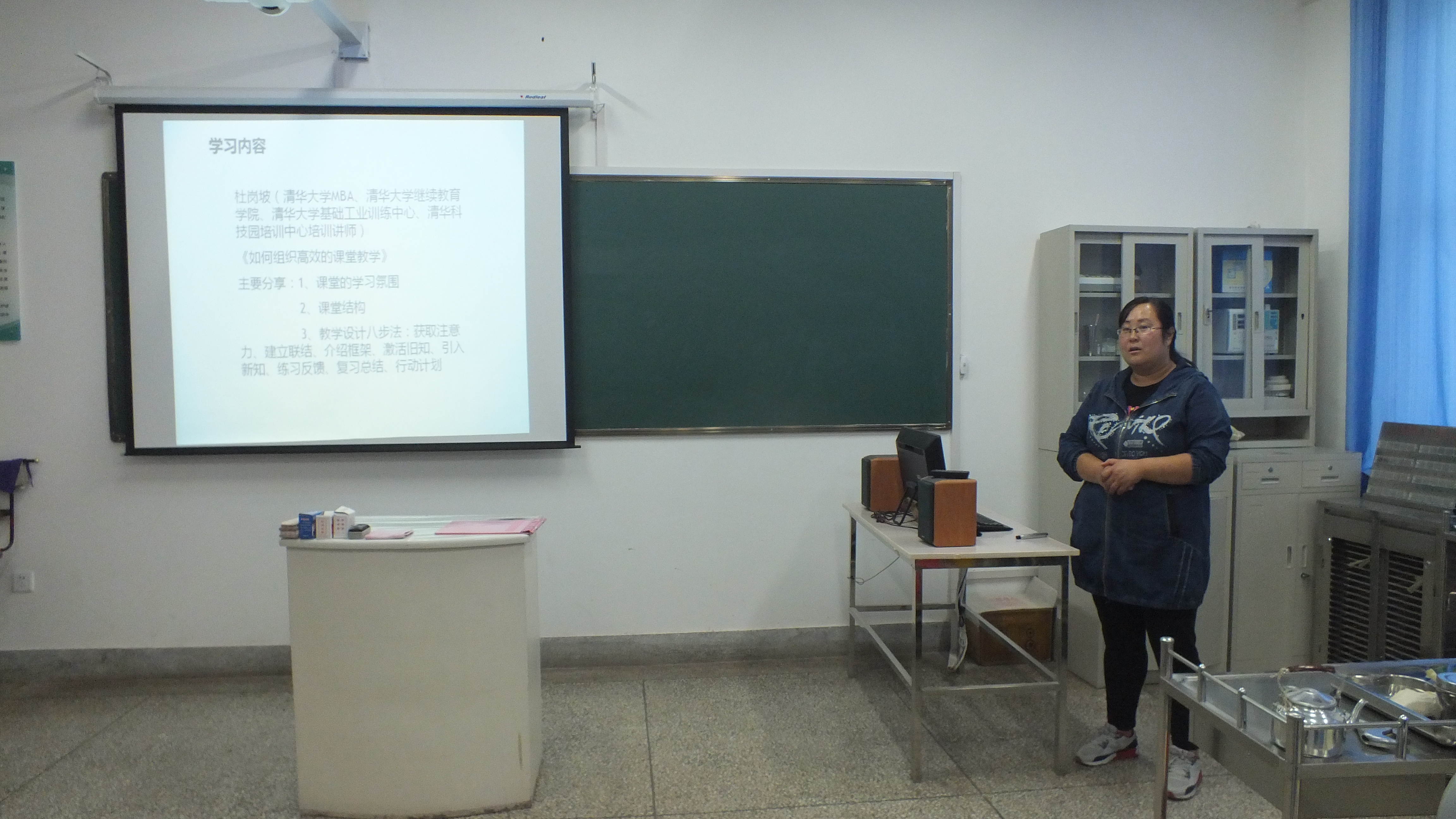 去北京參加全國職業(yè)院校教練式教學(xué)方法與課堂教學(xué)設(shè)計(jì)高級(jí)研修班的梁育霞老師主要匯報(bào)了學(xué)習(xí)到的教學(xué)方法和課堂設(shè)計(jì),一堂精彩的課程要有一個(gè)恰到好處的課堂設(shè)計(jì),好的課堂設(shè)計(jì)又要結(jié)合好的教學(xué)方法,鼓勵(lì)老師們多與經(jīng)驗(yàn)豐富的老師們交流經(jīng)驗(yàn)提高課堂設(shè)計(jì)水平。