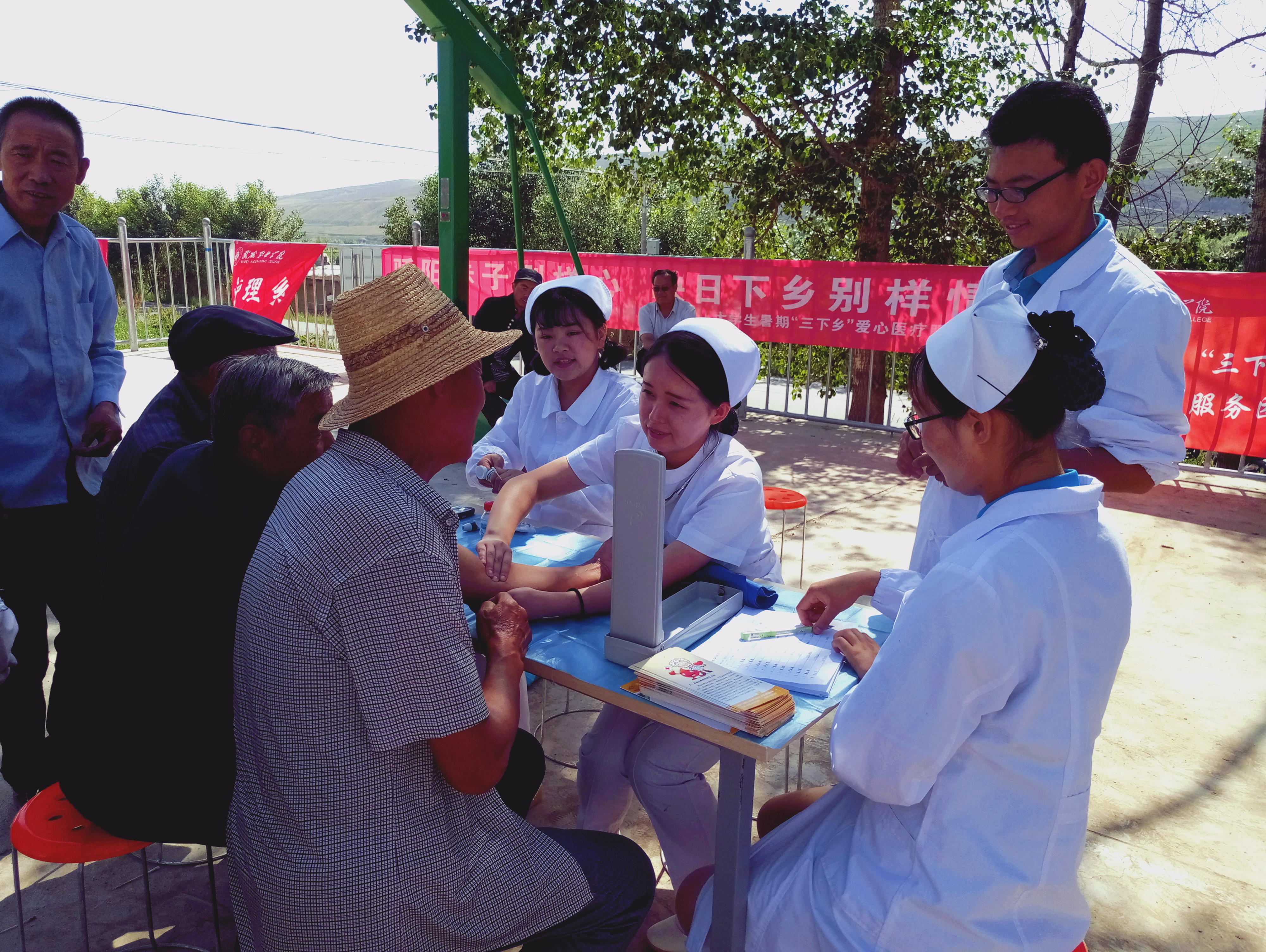 (護(hù)理系師生在張義鄉(xiāng)開展“三下鄉(xiāng)”活動)