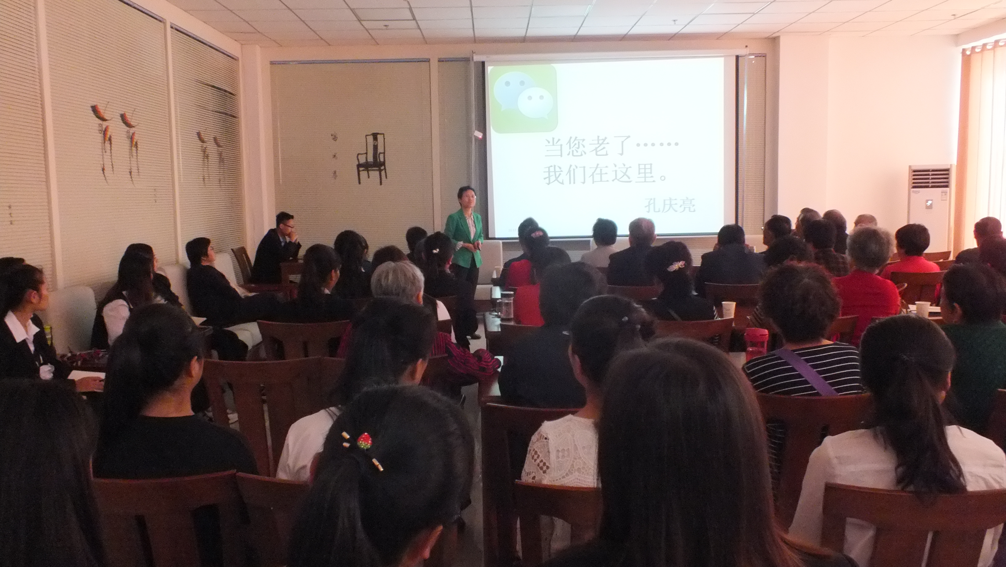 目前,我國老齡化社會形態(tài)已現(xiàn)雛形,養(yǎng)老問題日益突出,學(xué)院充分發(fā)揮學(xué)科資源優(yōu)勢,由專業(yè)教師為養(yǎng)老中心老年人做專題講座,介紹我國養(yǎng)老服務(wù)體系及養(yǎng)老現(xiàn)狀,普及老年人心理健康、生活保健、疾病預(yù)防等方面的相關(guān)知識,使老年人體會到“老有所養(yǎng),老有所樂”,為我市老年人群體解決醫(yī)療保健問題提供了一個獲取專業(yè)幫助的渠道。