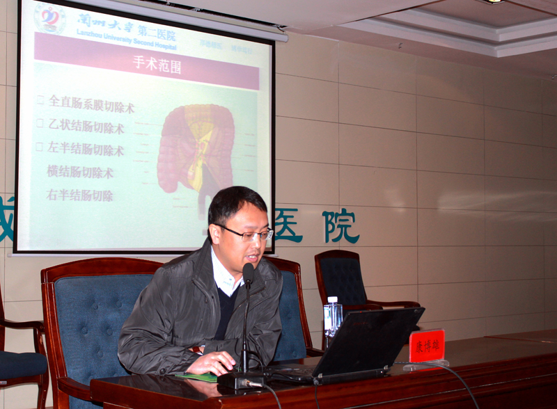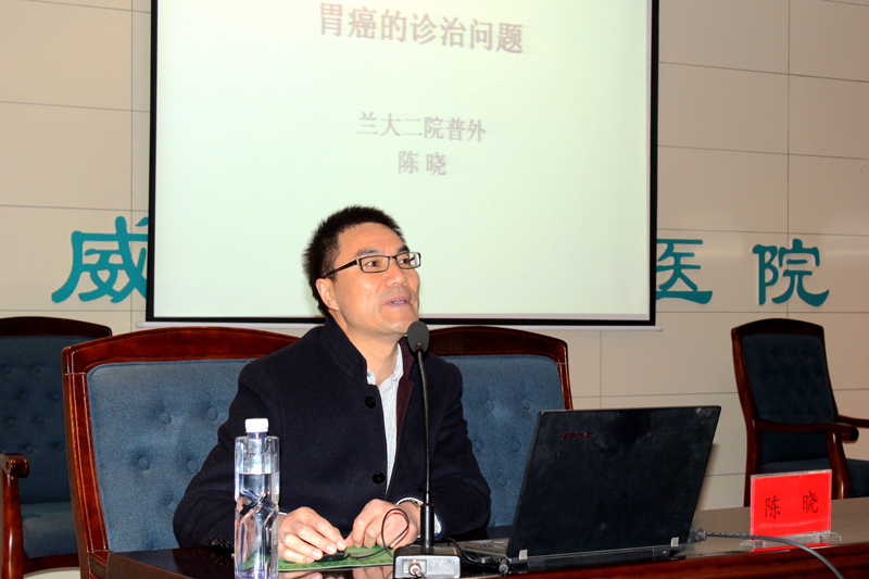 醫(yī)院邀請到蘭州大學第二醫(yī)院普外三科主任、胃腸外科主任、主任醫(yī)師陳曉和普外二科副主任,副主任醫(yī)師康博雄為大家作學術講座。陳曉主講了《胃癌的診治問題》,并與大家分享了他在法國醫(yī)院和美國醫(yī)院進修學習時的一些感想和見聞。陳曉在講座中結合臨床體會說:許多胃癌患者在就診時已經(jīng)發(fā)展為中晚期,失去了手術機會。他呼吁全社會要認識到對胃癌高發(fā)地區(qū)、高危年齡、高危人群進行篩查的必要性。醫(yī)生要對有癥狀的患者及早進行胃鏡檢查,爭取做到早發(fā)現(xiàn)、早診斷、早治療。講座中,陳曉就外科手術吻合方式選擇與直屬附屬醫(yī)院外科主任滕志勇醫(yī)生進行了現(xiàn)場互動。
