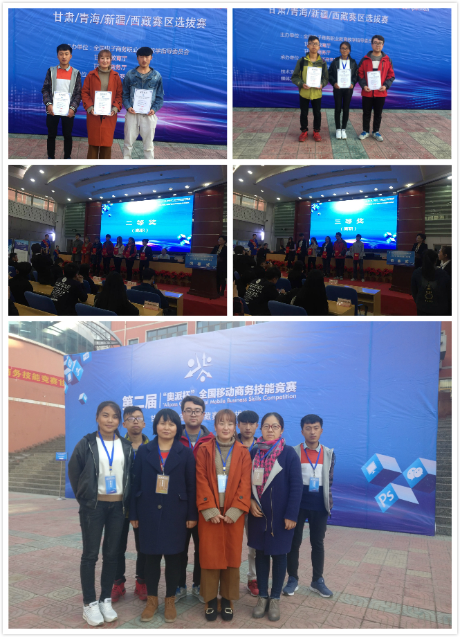 ?? 來自甘、青、新、藏24所院校的54支中、高職隊伍參加比賽。此次大賽旨在檢驗和展示職業(yè)院校移動商務(wù)專業(yè)教學(xué)成果,以賽促建,以賽促教,推進(jìn)移動商務(wù)專業(yè)在職業(yè)院校中的布點建設(shè),引領(lǐng)高等職業(yè)學(xué)校電子商務(wù)專業(yè)教學(xué)改革及移動商務(wù)專業(yè)建設(shè)的新趨勢。競賽經(jīng)過激烈的角逐,我院電子信息工程系、經(jīng)濟(jì)管理系聯(lián)合由齊紅梅、任向陽、張程鵬組成的“躍動力”隊獲得團(tuán)體二等獎,由高勇、劉建歡、王婷娟組成的“微江湖”隊獲得省級三等獎,張玉梅和郭秀花老師分別獲得優(yōu)秀指導(dǎo)教師獎。