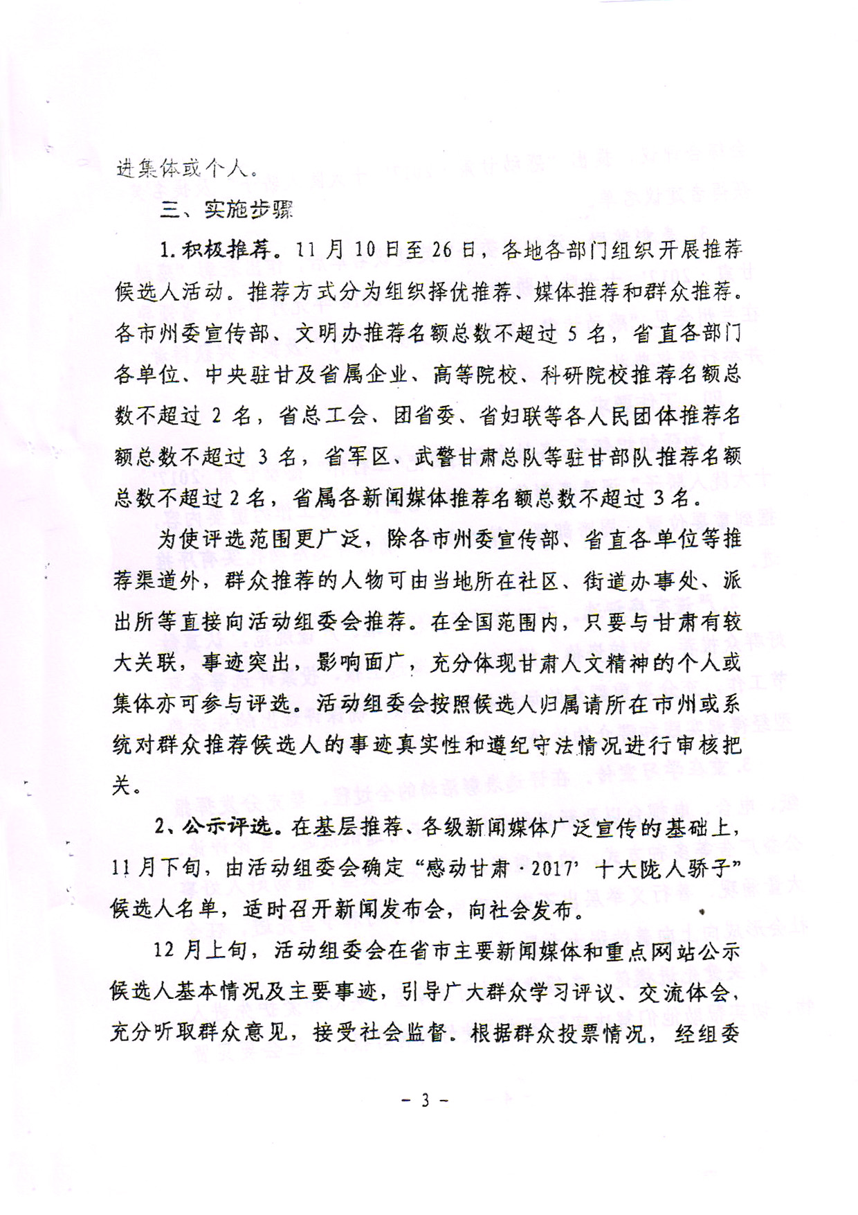 關(guān)于推薦“工行杯”感動(dòng)甘肅?2017十大隴人驕子候選人的工作通知